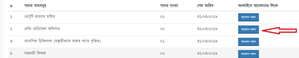 ০১. প্রথম পেইজ থেকে পদ নির্বাচন [যে পদে প্রার্থী আবেদন করতে ইচ্ছুক] করুন। নিচের চিত্রটি দেখুনঃ