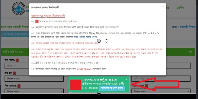 ০৭.আবেদন ফরমটি পূরণ করে সাবমিট করার পর ডাউনলোড করে প্রিন্ট করুন এবং কোড ও মোবাইল নম্বর মনে রাখুন যাতে পরবর্তীতে প্রিন্ট করা যায়।